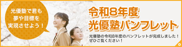 光優塾は広島の大手進学塾の元名物講師が開いた学習塾。塾長自らが作成するオリジナル教材と、徹底した受験情報の分析で生徒達の進学をしっかりサポート。福山市の中学受験・高校受験・大学入試は光優塾にお任せください。